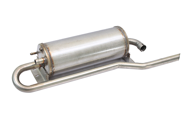 該消音器使用汽車發(fā)動機尾氣排放消音,主體采用不銹鋼結構,該消音器采用水冷消音雙系統(tǒng),對尾氣進行消音的同時對其進行冷卻,降低尾氣的排放溫度,防止尾氣燙傷;